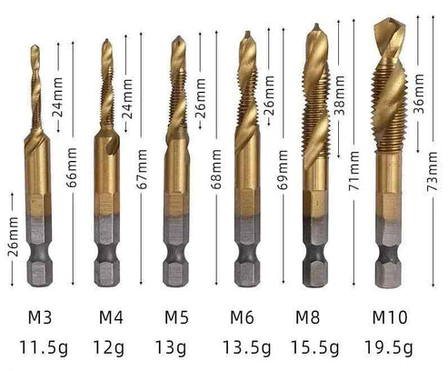Этот революционный набор из 6 сверл объединяет сверление, нарезание резьбы и зенкование в одной операции.